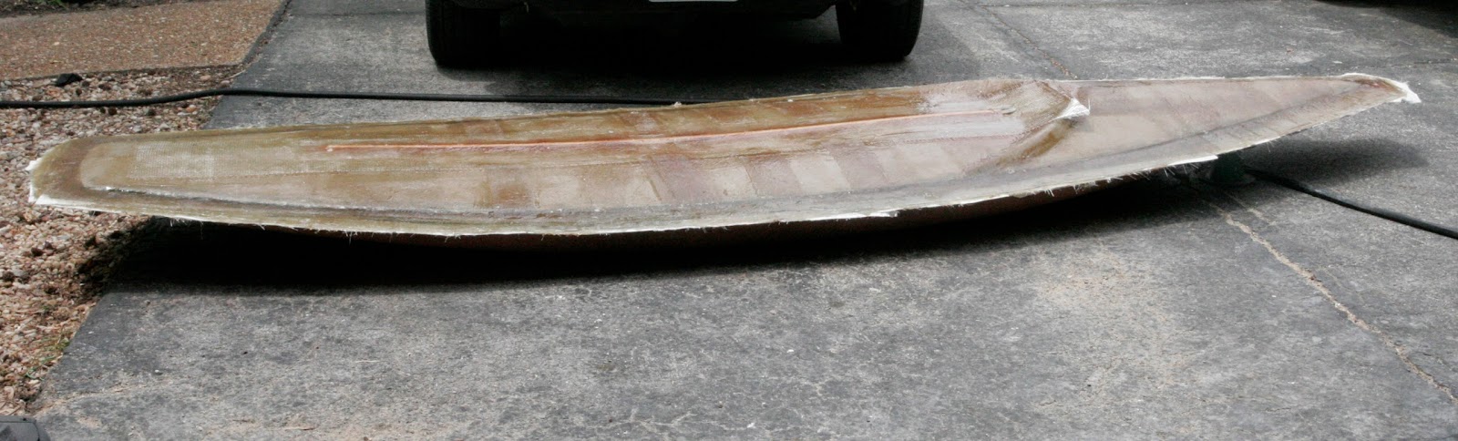 | This photo shows the two half molds together. The board will float in this trim, but 3 or 4 inches lower. |